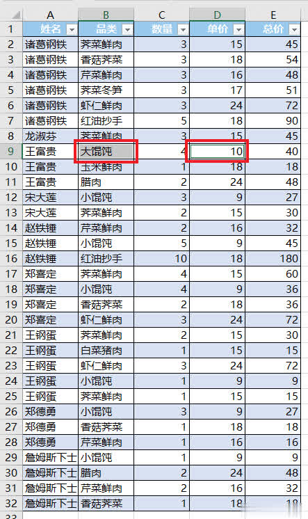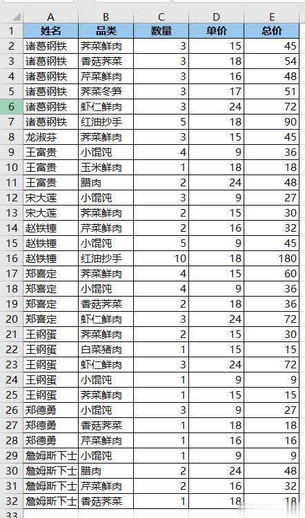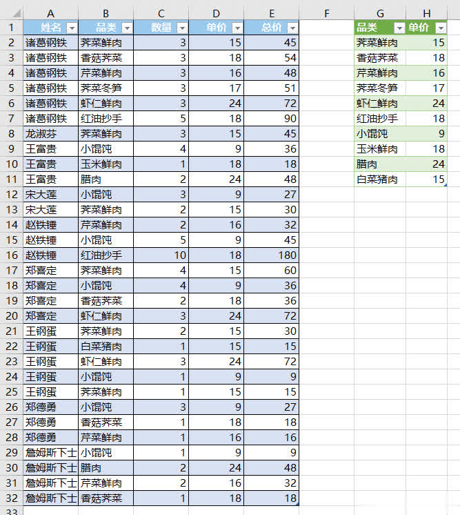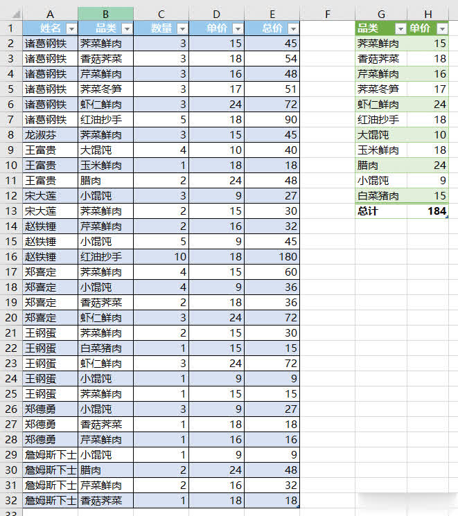 案例:计算下图 1 中所有唯一品类的单价总和,效果如下图 2 所示。