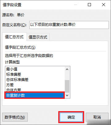 5. 在弹出的对话框中选择“非重复计数”--> 点击“确定”