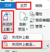 5. 选择工具栏的“主页”-->“关闭并上载”-->“关闭并上载至”